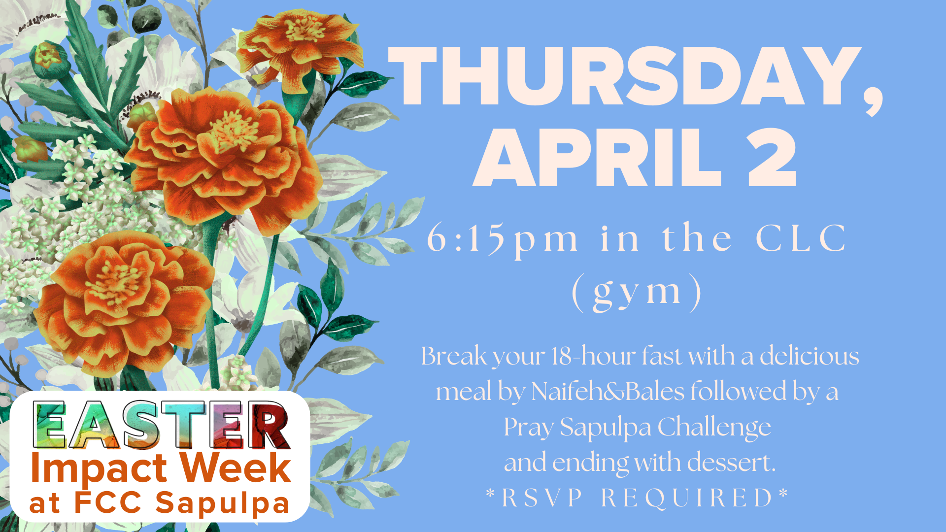 Thursday of Easter Impact Week RSVP to reserve your seat: https://forms.gle/6gcGuBXHdTgzZmsb7 + Add to Google Calendar + iCal / Outlook export Date Apr 02 2026 Expired! Time 6:15 pm - 8:00 pm Category Featured Events Share this event